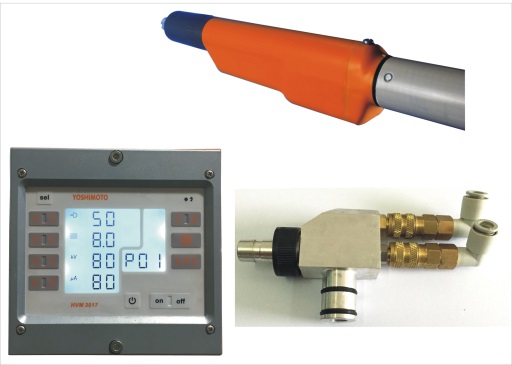 粉末經(jīng)過噴槍電極電暈區(qū)域進(jìn)行充電,使其帶靜電并吸附至接地工件表面。