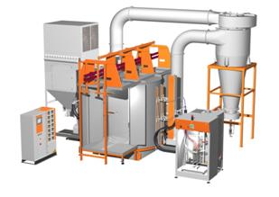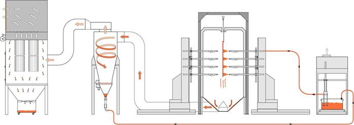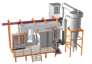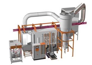 后過濾抽風(fēng)使其噴房?jī)?nèi)部產(chǎn)生負(fù)壓,并將未吸附的粉末隨氣流,經(jīng)內(nèi)壁平滑的管道,吸至大旋風(fēng)進(jìn)行分離。
